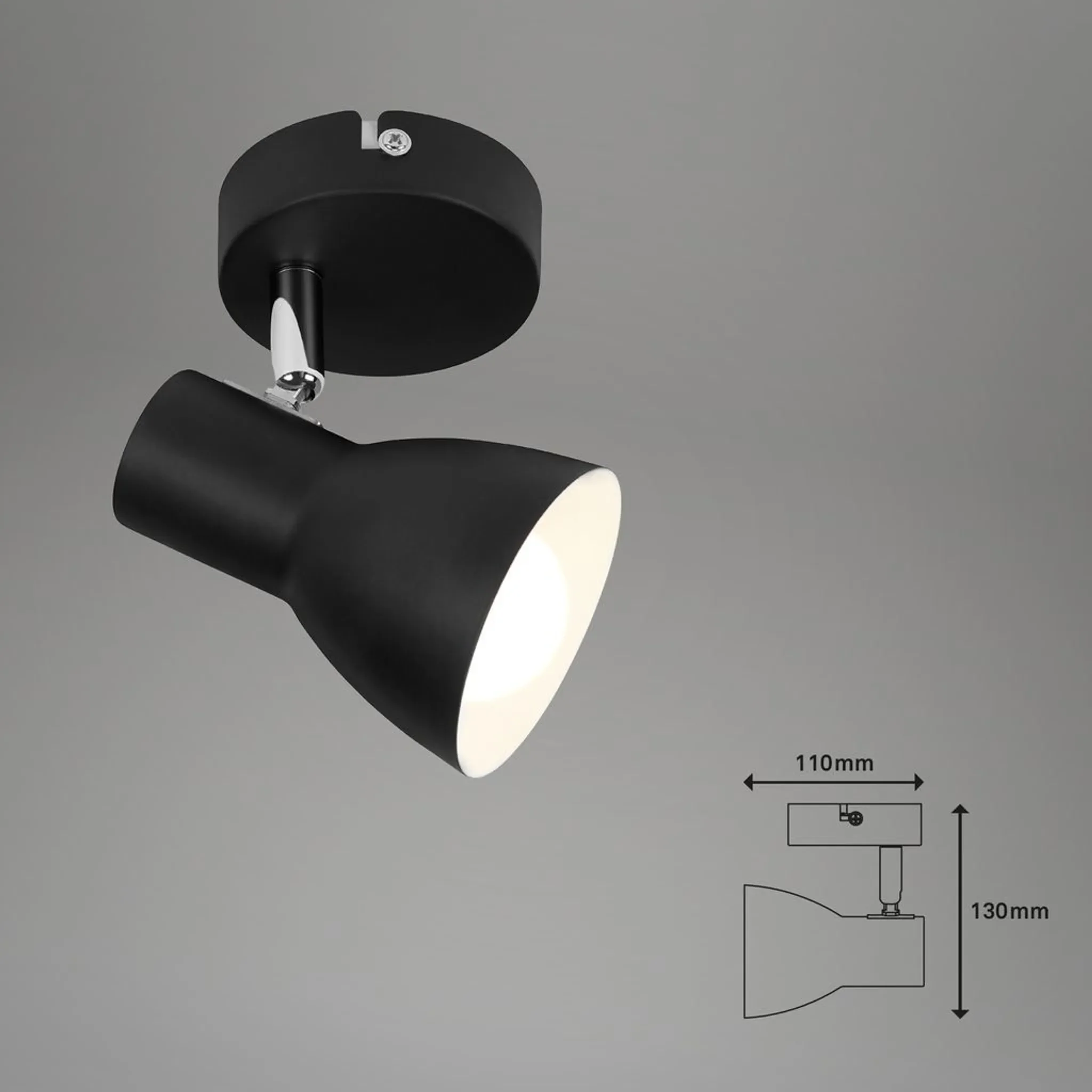 Der Spotkopf ist dreh- und schwenkbar, sodass das Licht gezielt ausgerichtet werden kann. Ideal als Deckenleuchte im Wohnzimmer, Schlafzimmer oder als Akzentbeleuchtung in Fluren und Arbeitsbereichen. Die E14-Fassung ermöglicht eine individuelle Wahl von Lichtfarbe und Helligkeit.