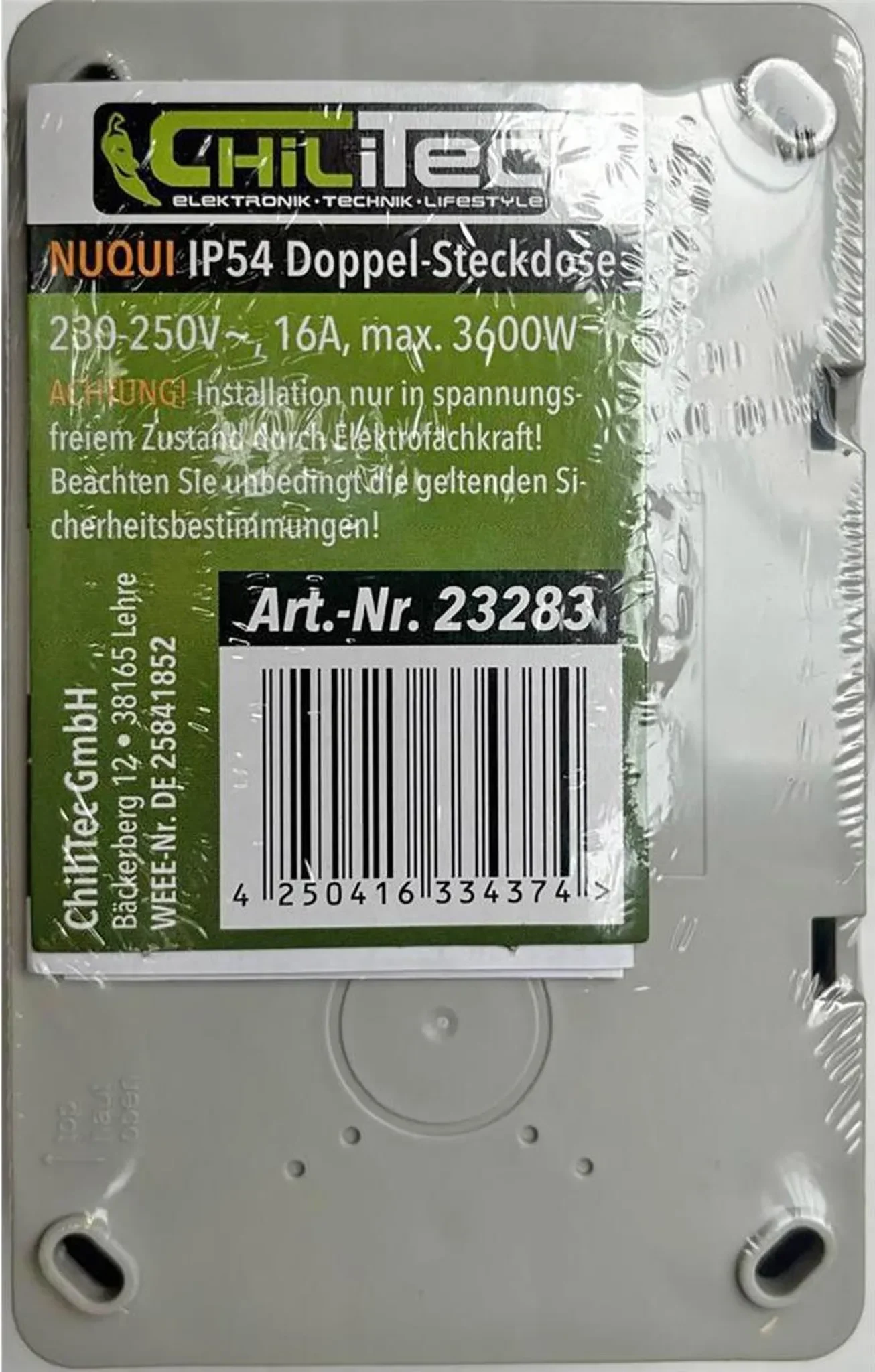 Produktinformationen "ChiliTec NUQUI 23283 Feuchtraum Doppel-Steckdose – Horizontal, IP54, Grau"