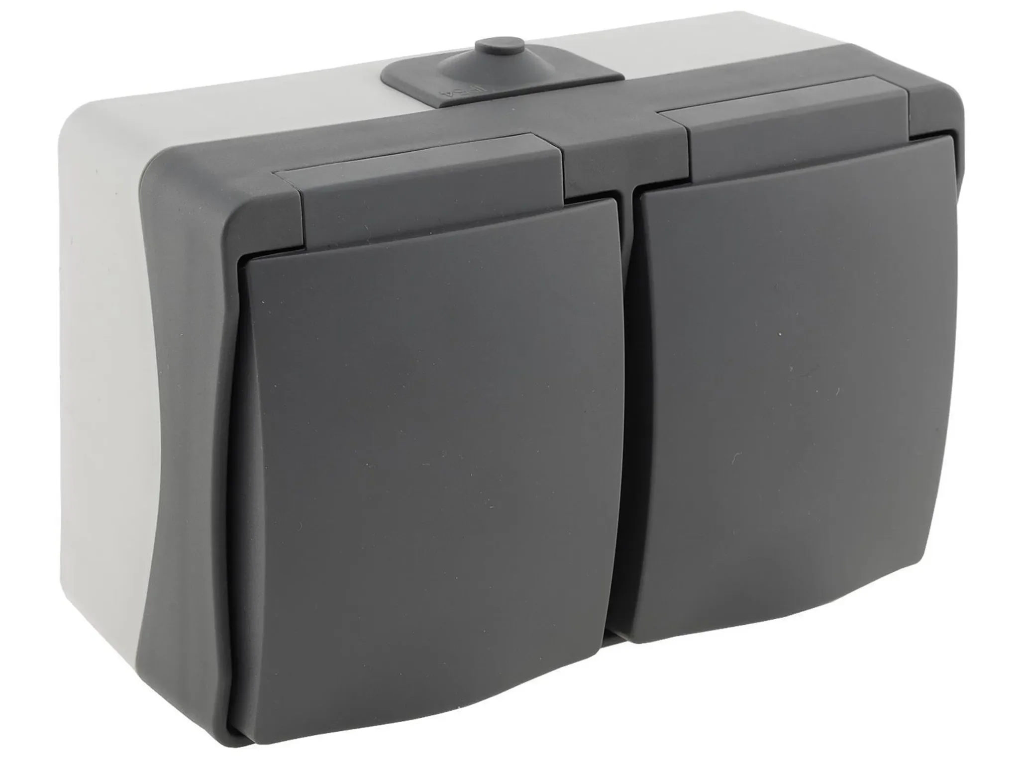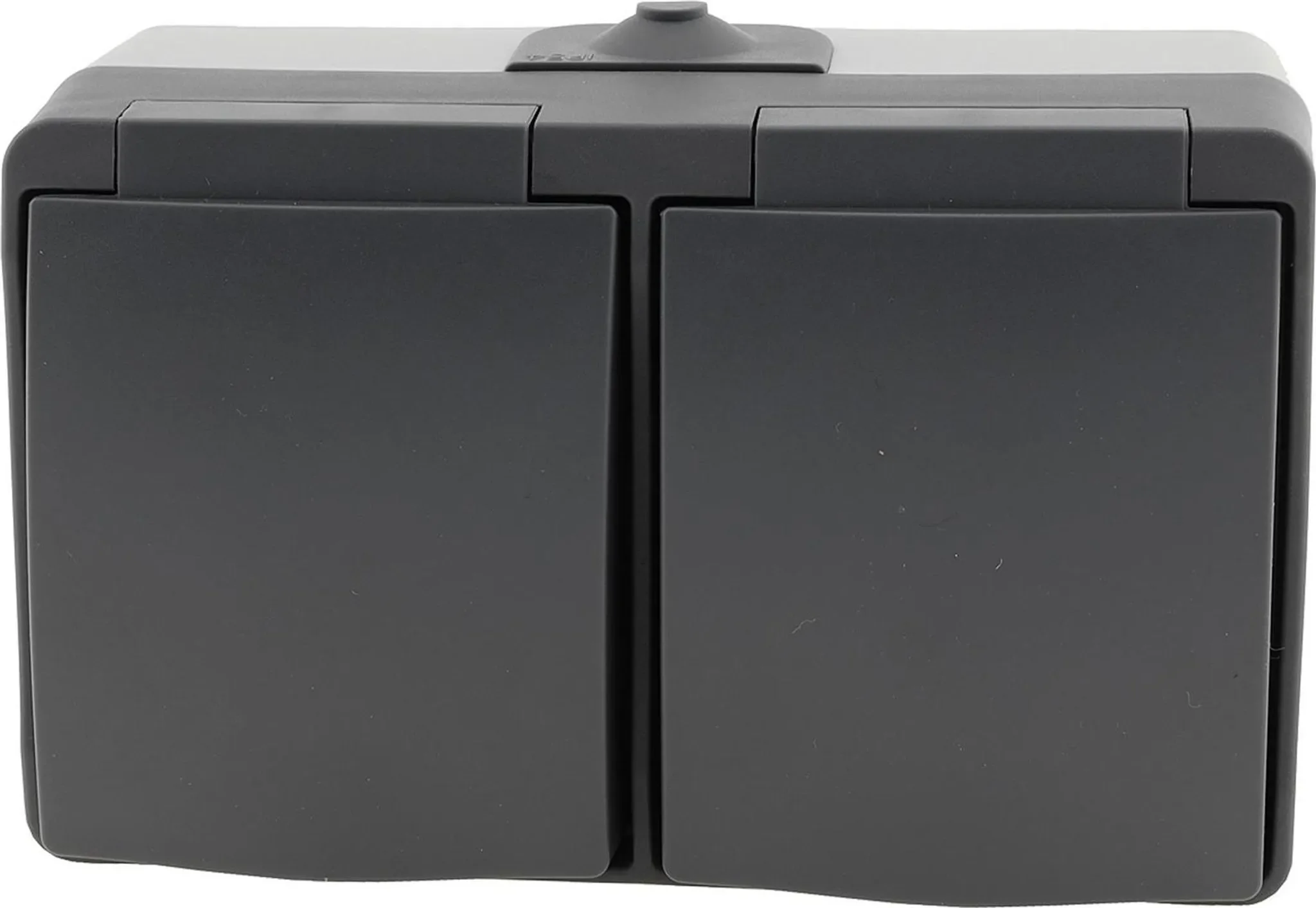 ChiliTec NUQUI 23283 Feuchtraum Doppel-Steckdose – Horizontal, IP54, Grau
