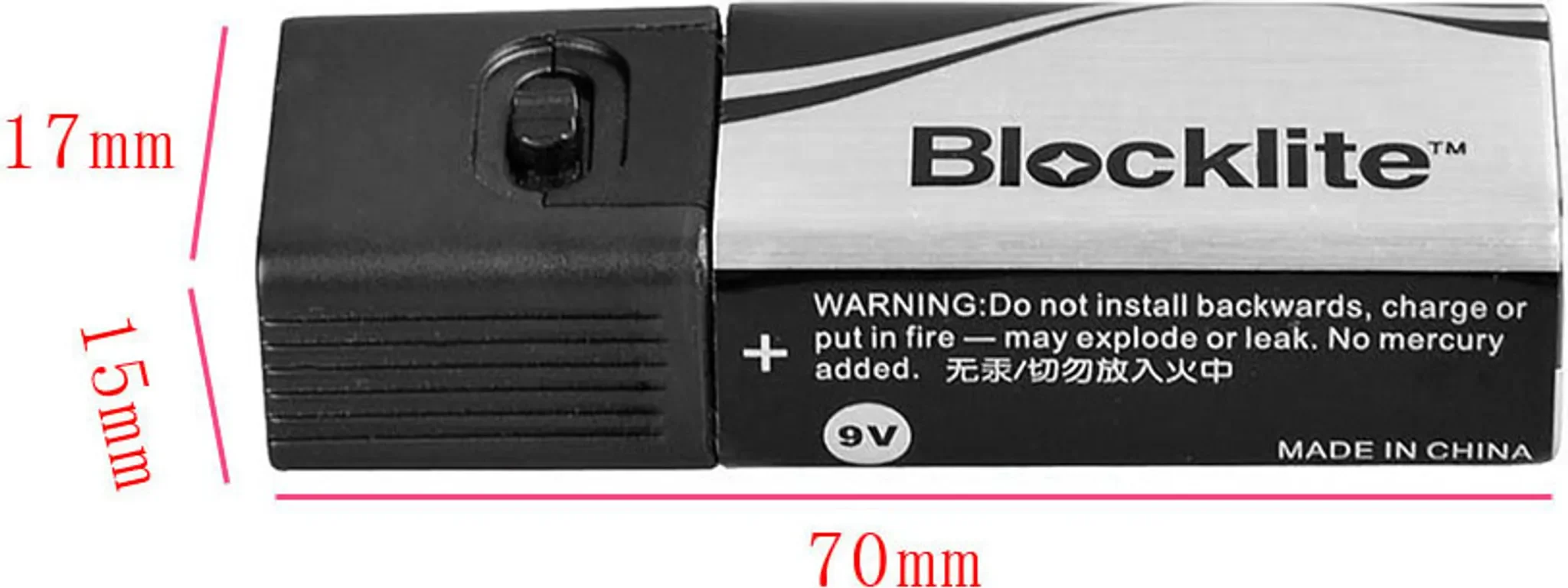 | Im Paket | 1 × LED Taschenlampe · 1 × 9 V Batterie |