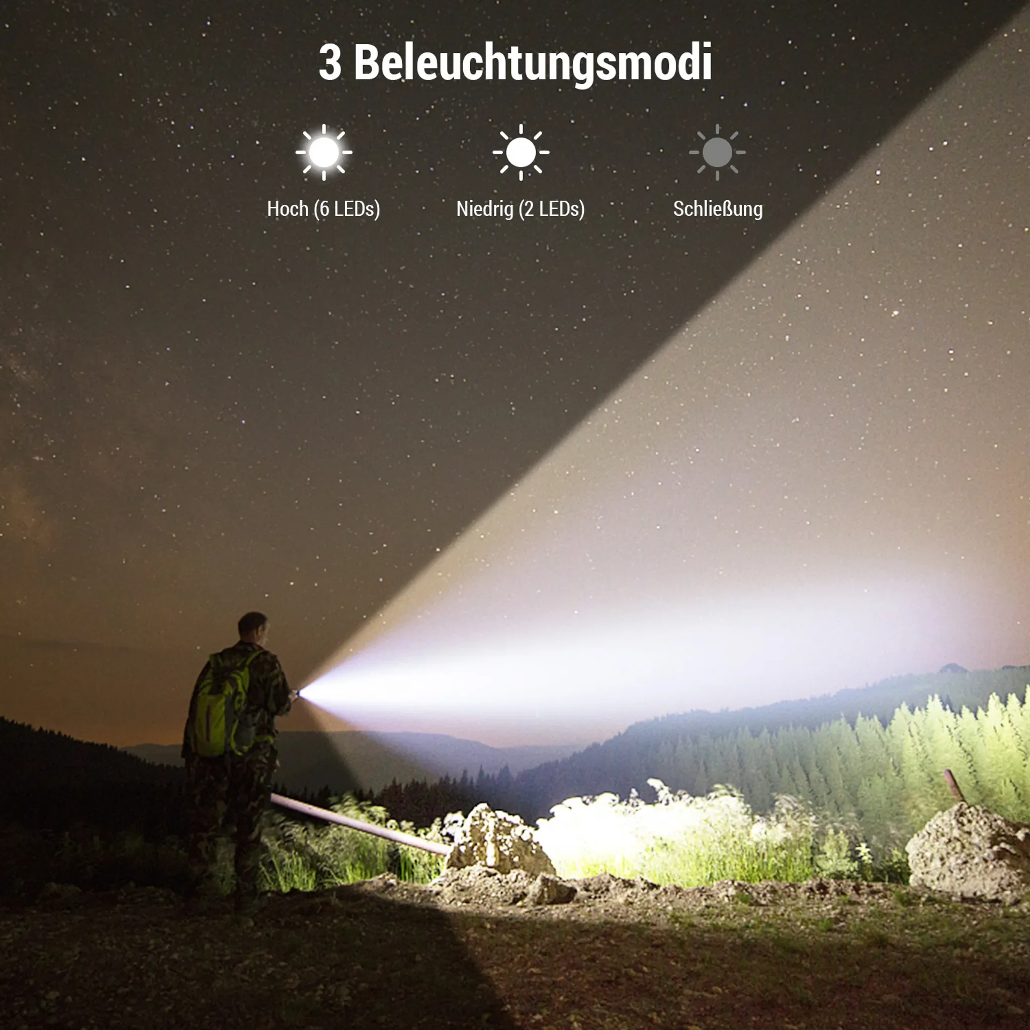 | Leuchtmodi | Hoch (6 LEDs), Schwach (2 LEDs) |