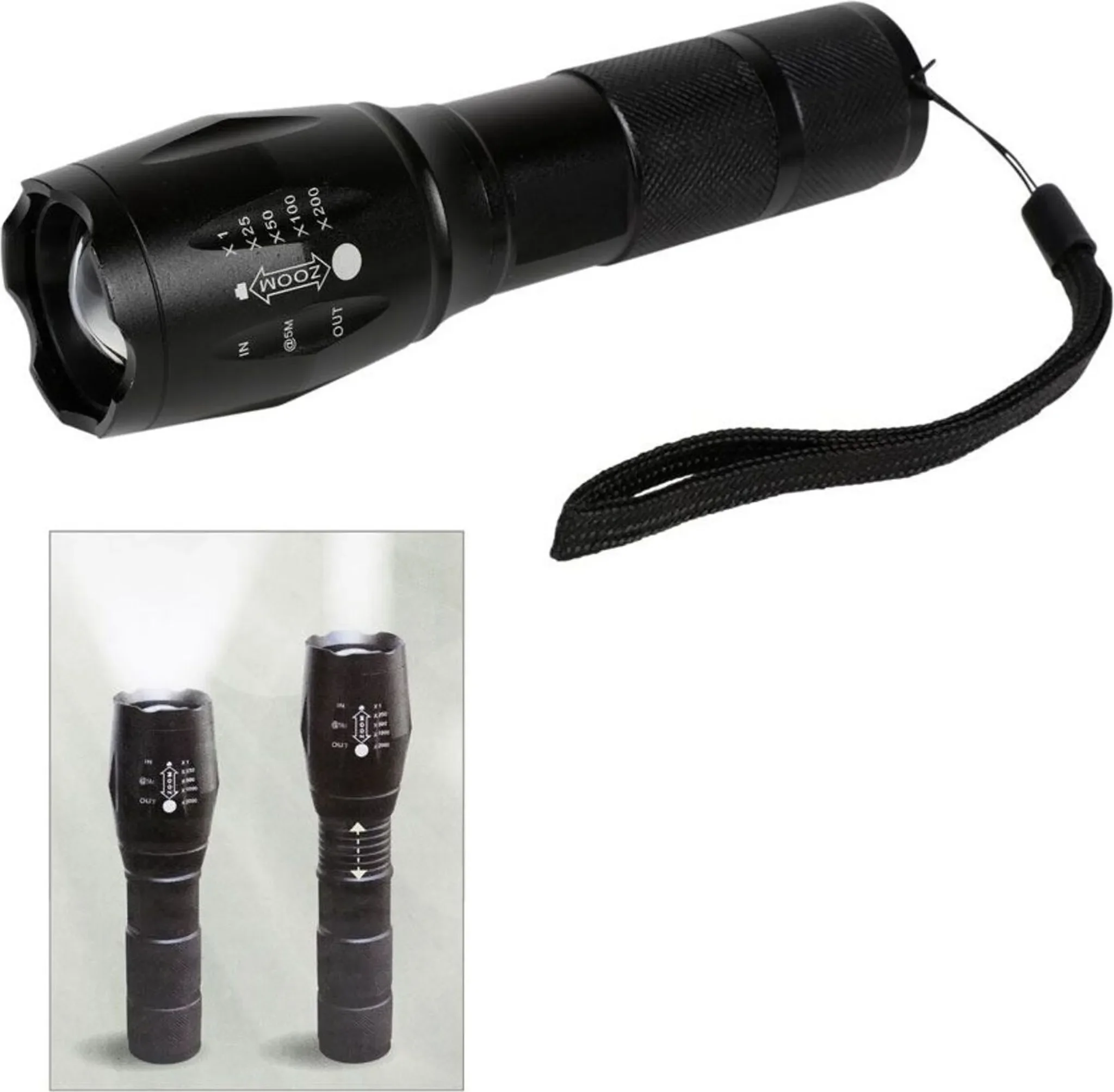 Robuste Stabtaschenlampe mit Zoom · SOS- & Stroboskop-Funktion