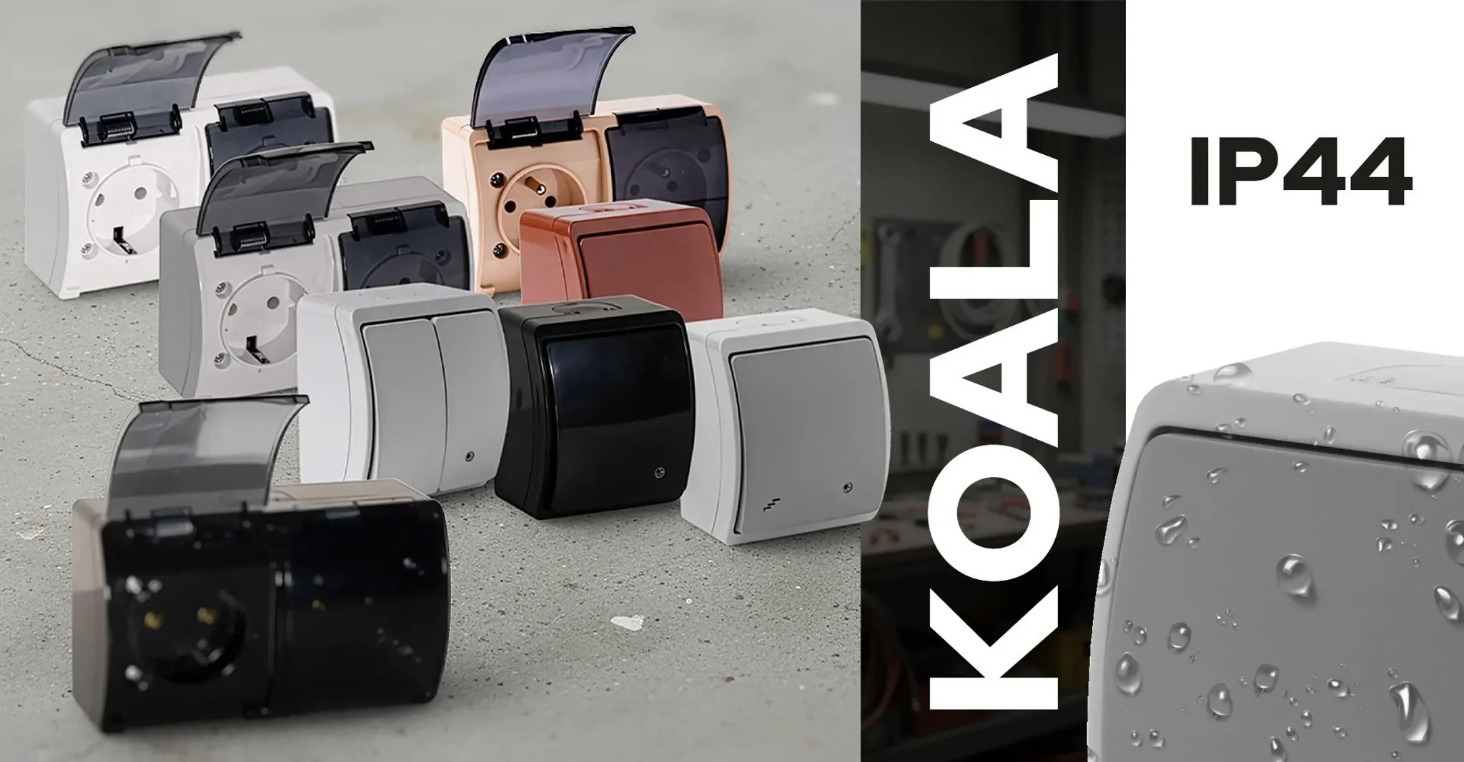 Der einpolige Aufputzschalter aus der KOALA-Serie von VIPLAST wurde speziell für den Einsatz in feuchtigkeitsgefährdeten Bereichen entwickelt. Dank der Schutzart IP44 ist der Schalter zuverlässig gegen Spritzwasser und Staub geschützt und eignet sich ideal für Garagen, Werkstätten, Keller, Produktionsräume sowie sanitäre Bereiche.