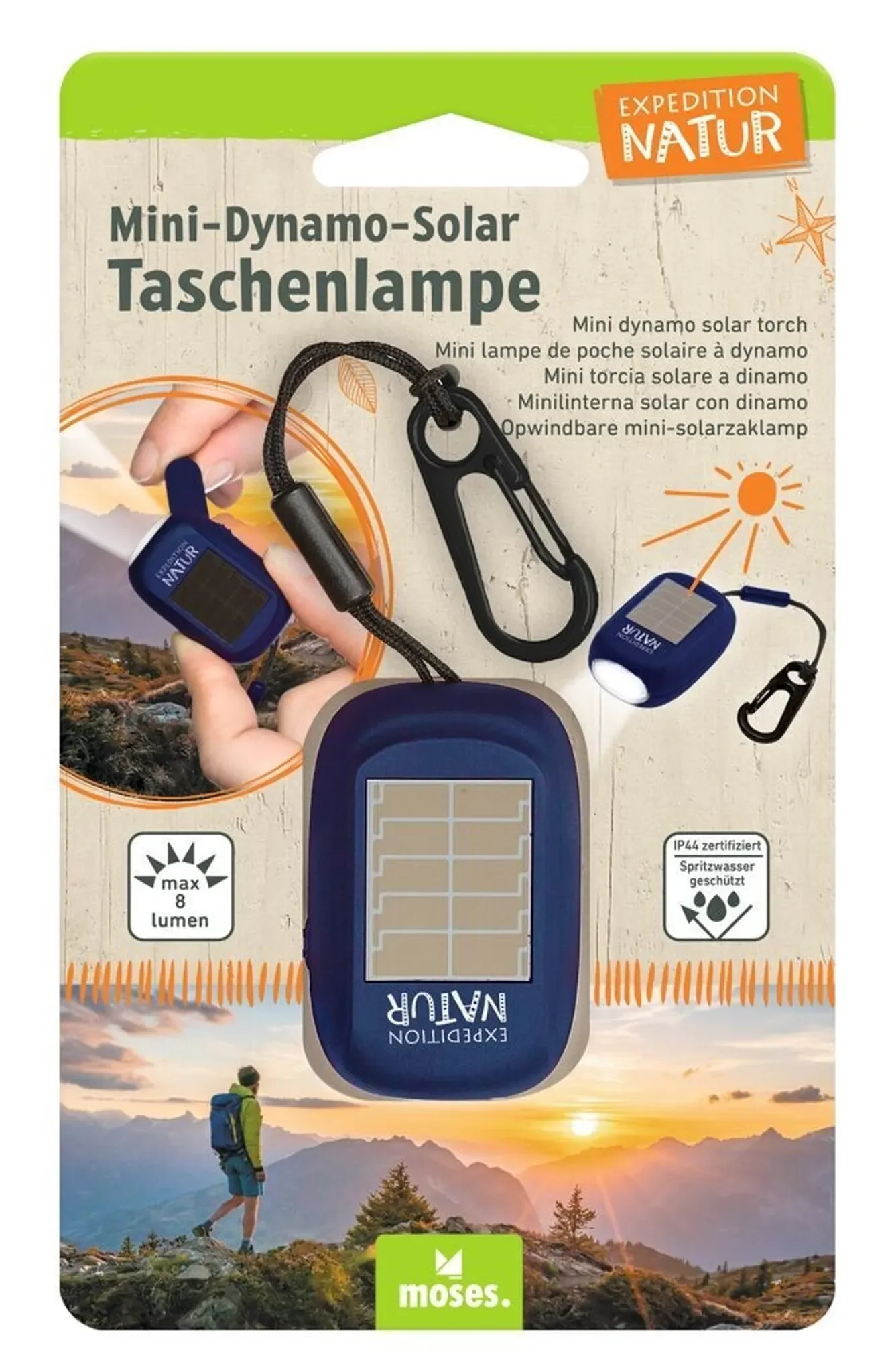 moses. Expedition Natur Mini-Dynamo-Solar Taschenlampe – kompakt & umweltfreundlich